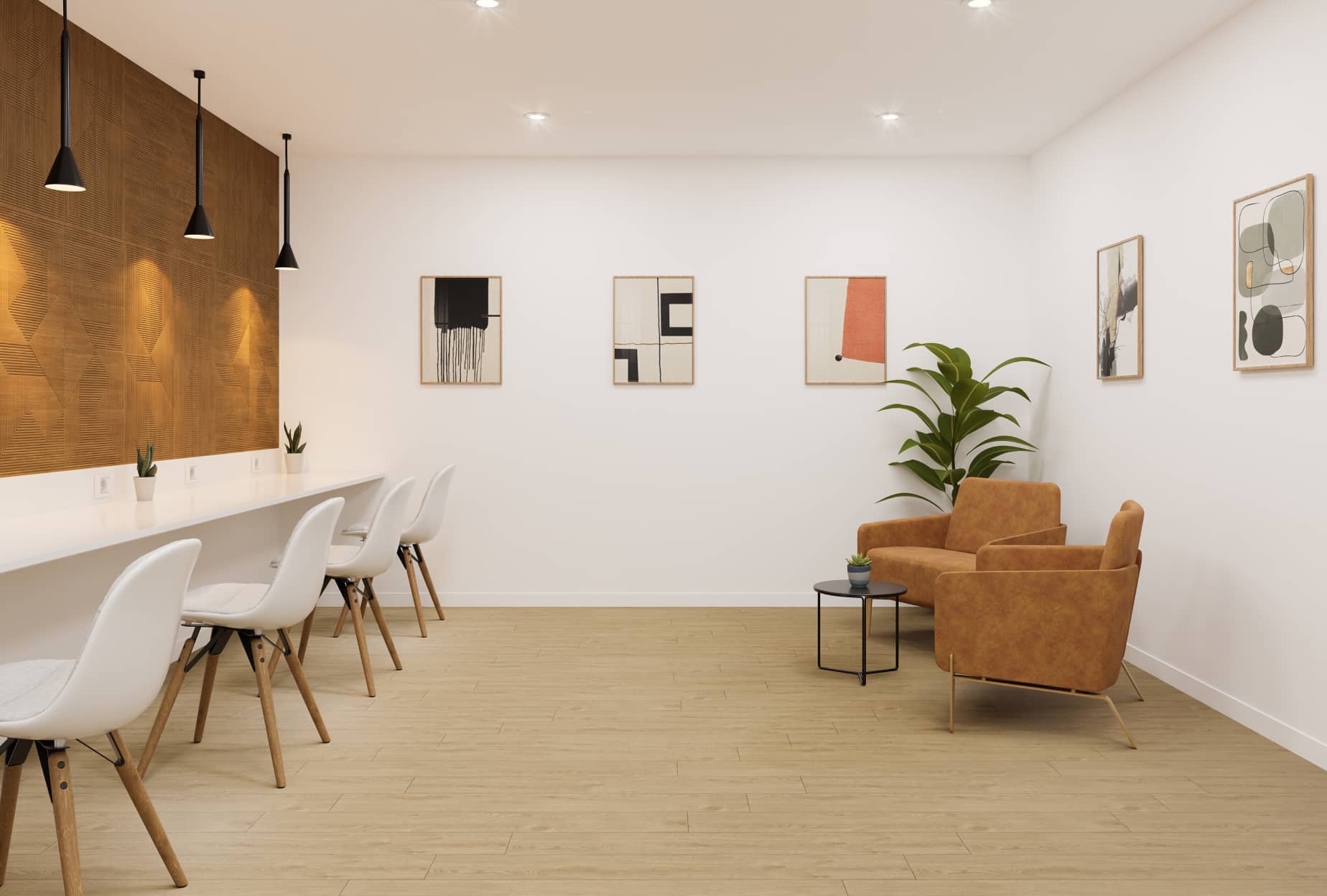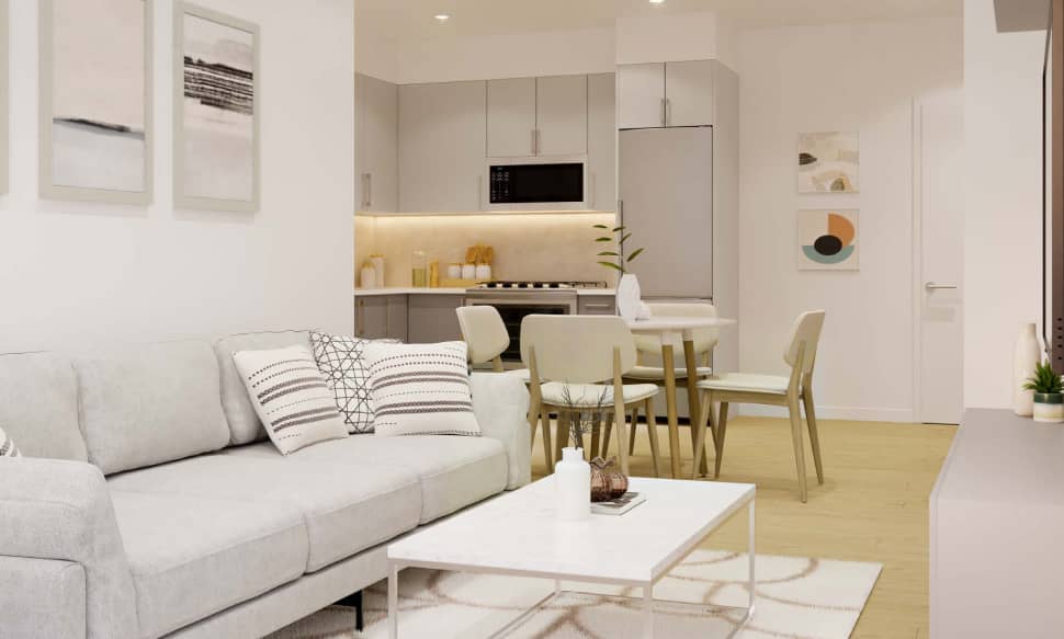 At Sakoon Living, residents will find thoughtfully designed interiors and modern architecture, crafted by ParaMorph Architecture Inc. and Chy Design. Each unit features premium finishes, energy-efficient systems, and smart home technology. The spacious interiors, with custom cabinetry and hardwood flooring, create a warm, inviting atmosphere perfect for modern lifestyles. Outside, enjoy curated spaces including a fitness center, conference room, and co-working areas, with a total of approximately 10,000 sq ft of amenities tailored for relaxation and community connection.